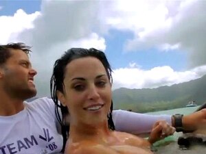 Lusty huge boobs babes enjoying kite surfing while nake