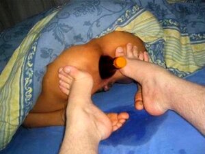Tight Asshole Getting Fucked, She is on the bed, ready and waiting for her boyfriend to come and put his dick in her asshole while she plays her pussy with a dildo. She moans all the time and gets her legs up when he pushes hard inside.