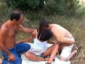 Old couple seduce brunette cutie. Old couple seduce brunette cutie into 3some